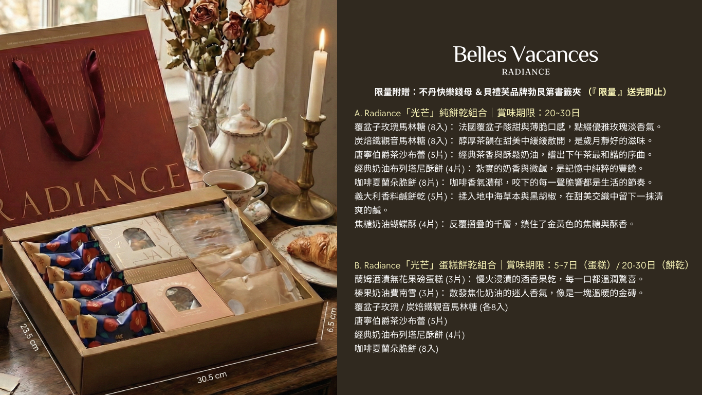 Radiance「光芒」純餅乾組合|賞味期限:20~30日 Radiance「光芒」蛋糕餅乾組合|賞味期限:5~7日(蛋糕)/ 20-30日(餅乾)